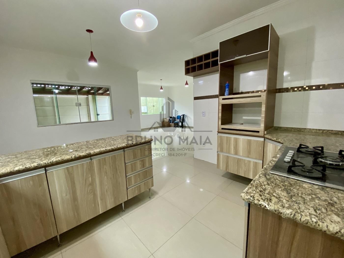 03 suítes sendo 01 master com banheira, 01 quartinho que dá para ser feito escritório, sala de estar, sala de jantar, cozinha com armários e cooktop, lavanderia coberta, lavabo e garagem para 02 carros cobertos.