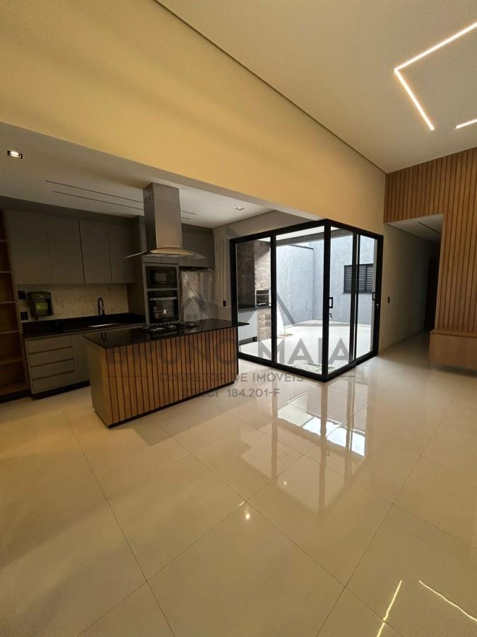 Sala e cozinha integradas, trazendo mais amplitude e praticidade, 3 dormitórios, sendo 2 suítes, churrasqueira, lavanderia e garagem para 02 carros.