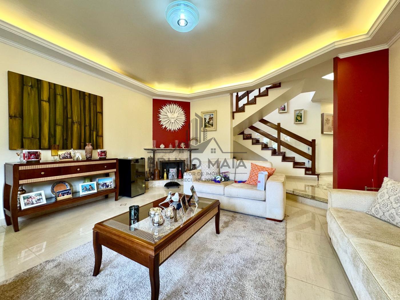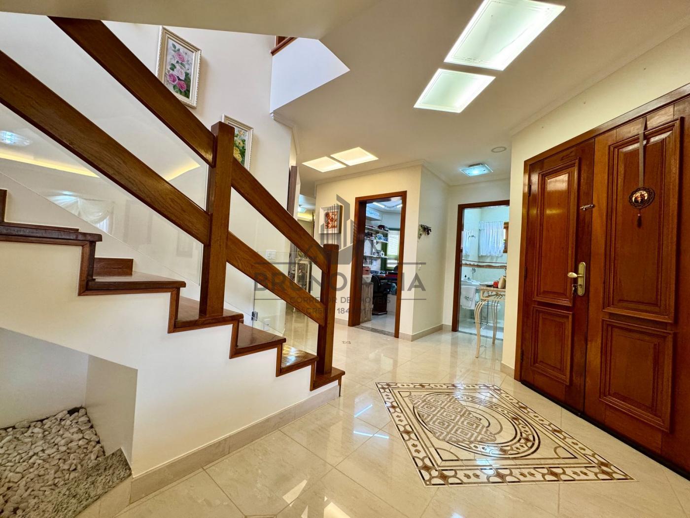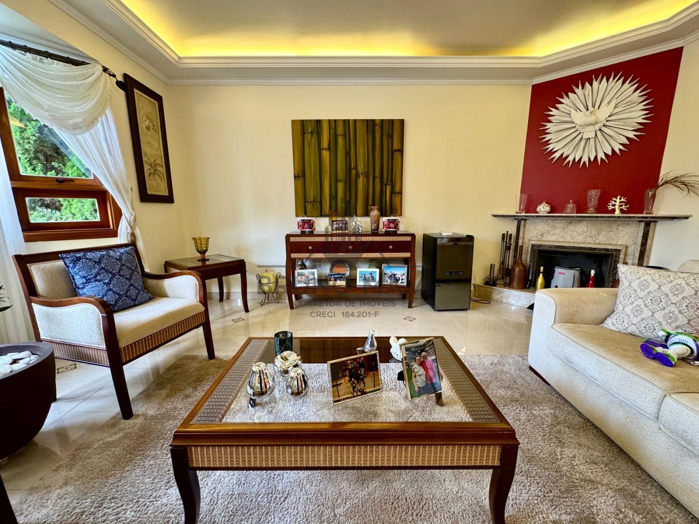 Este imóvel possui no andar térreo: sala de estar com lareira, sala de TV, sala de jantar, cozinha com armários planejados, escritório, lavabo.