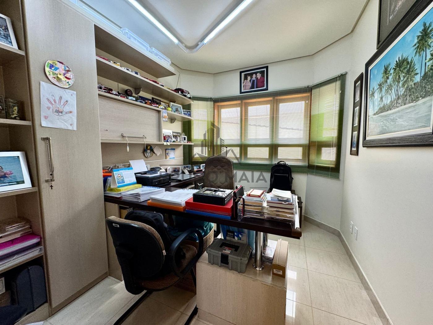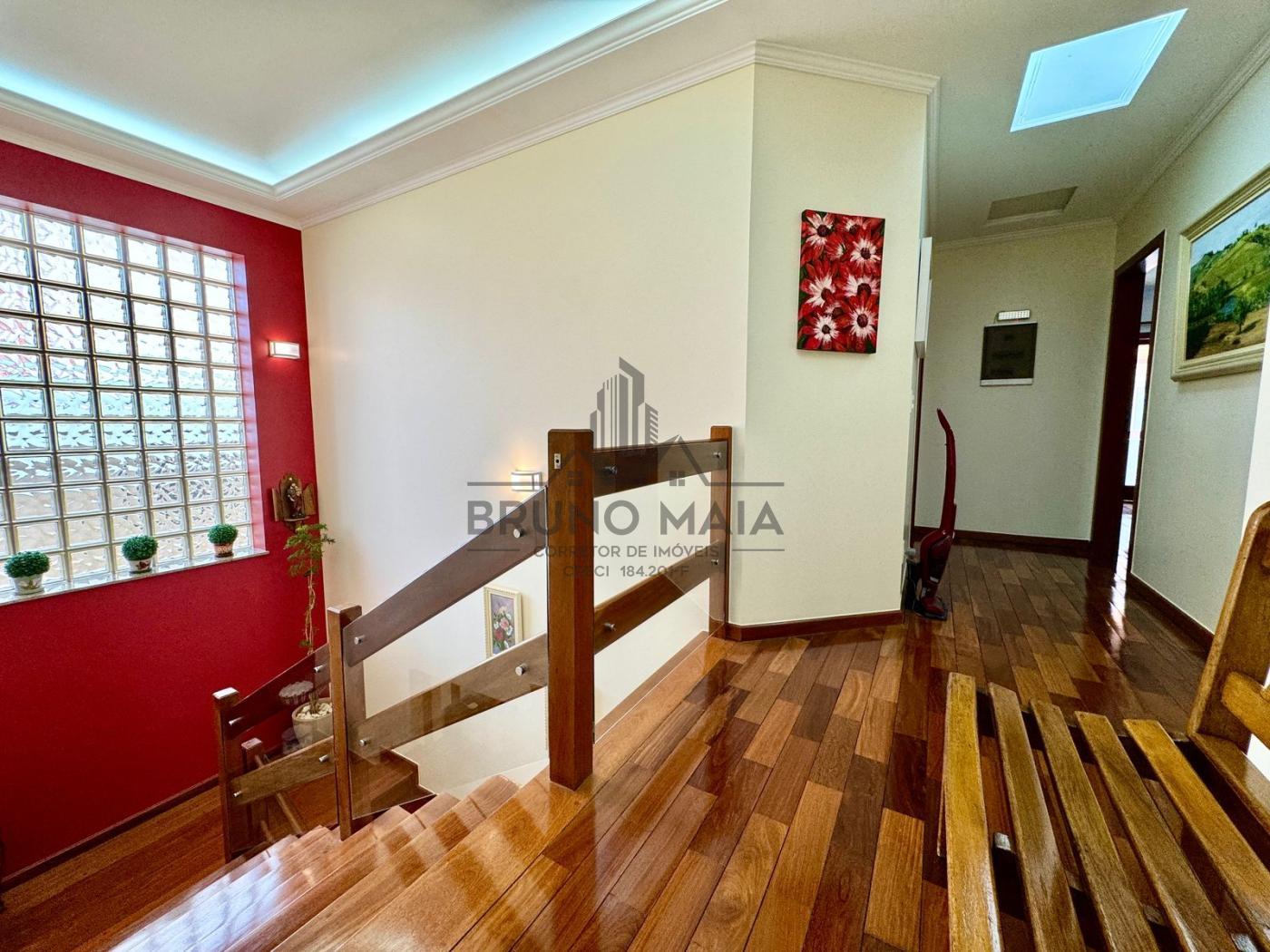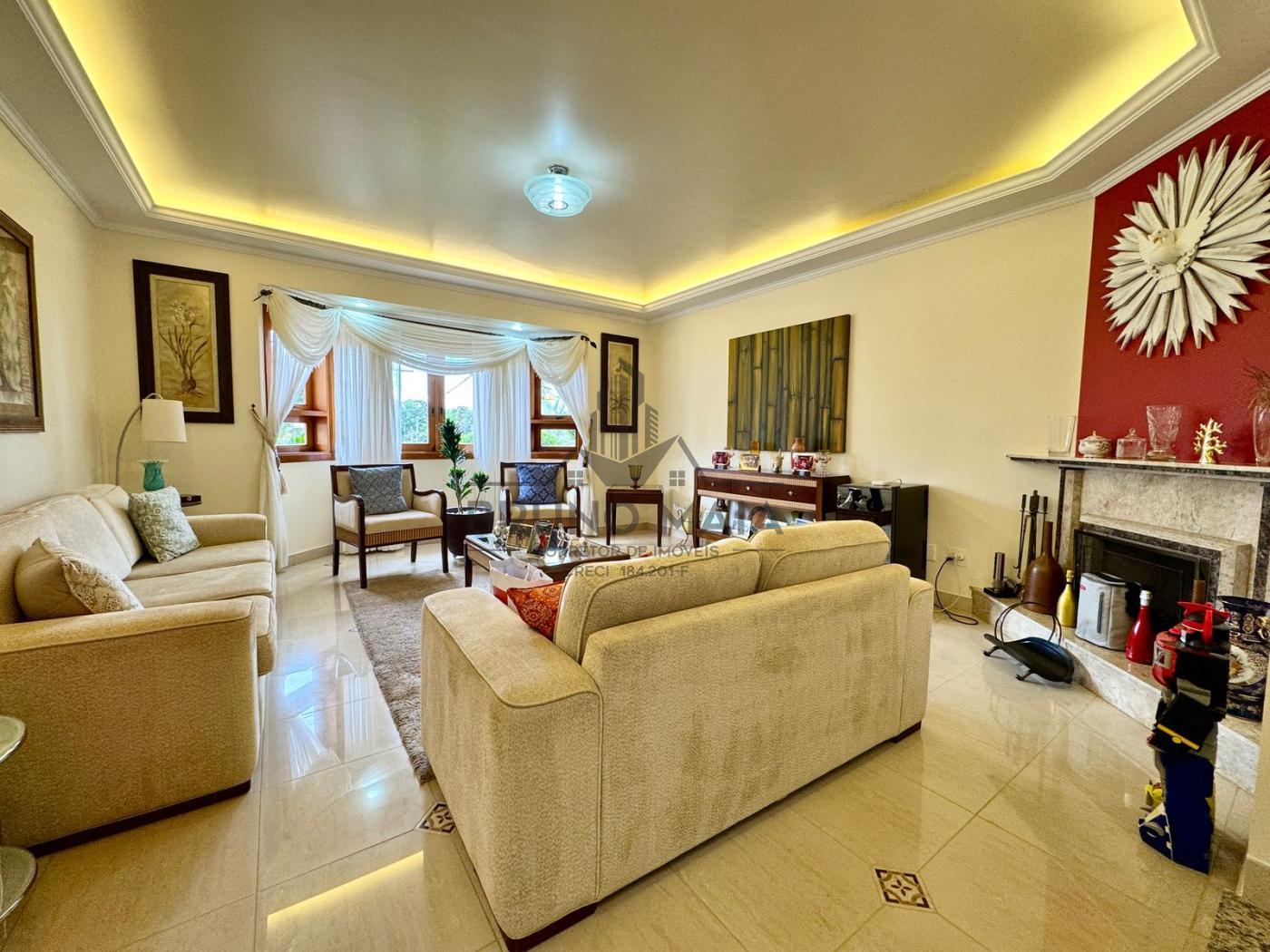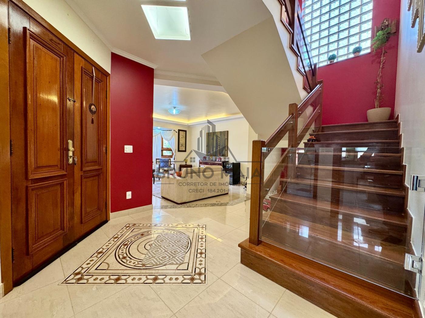 Este imóvel possui no andar térreo: sala de estar com lareira, sala de TV, sala de jantar, cozinha com armários planejados, escritório, lavabo.